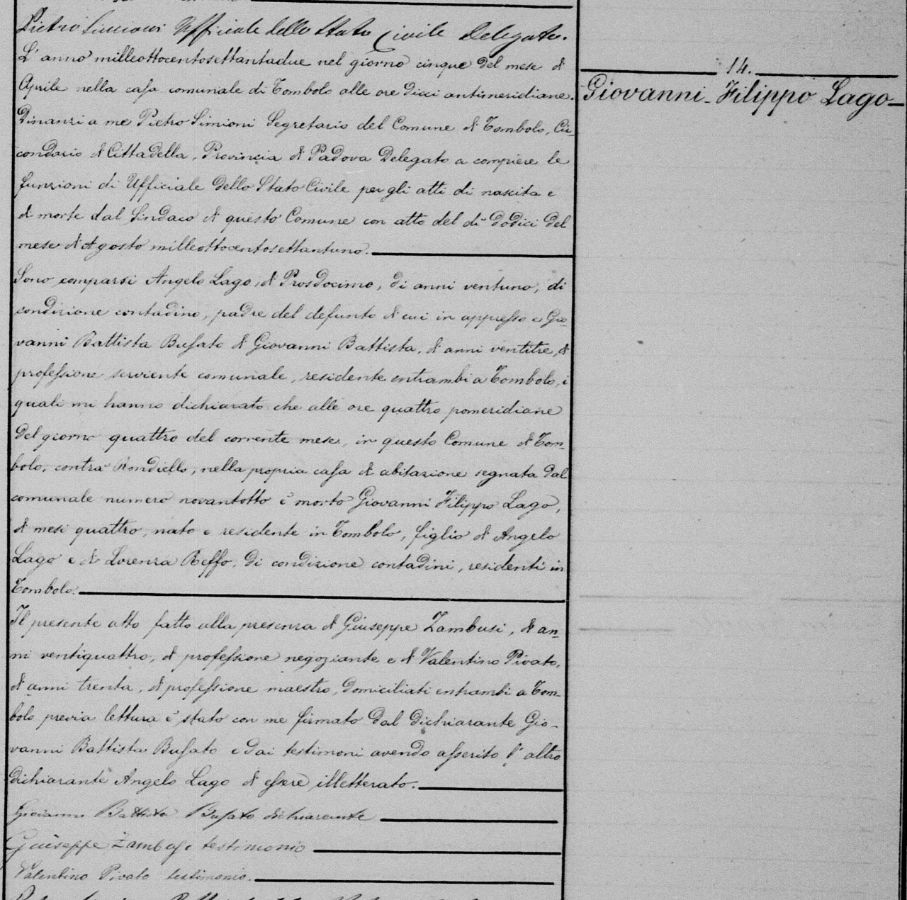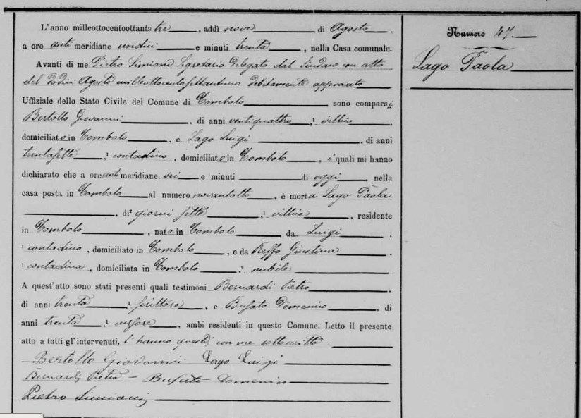 Registro de óbito de Paola Lago.