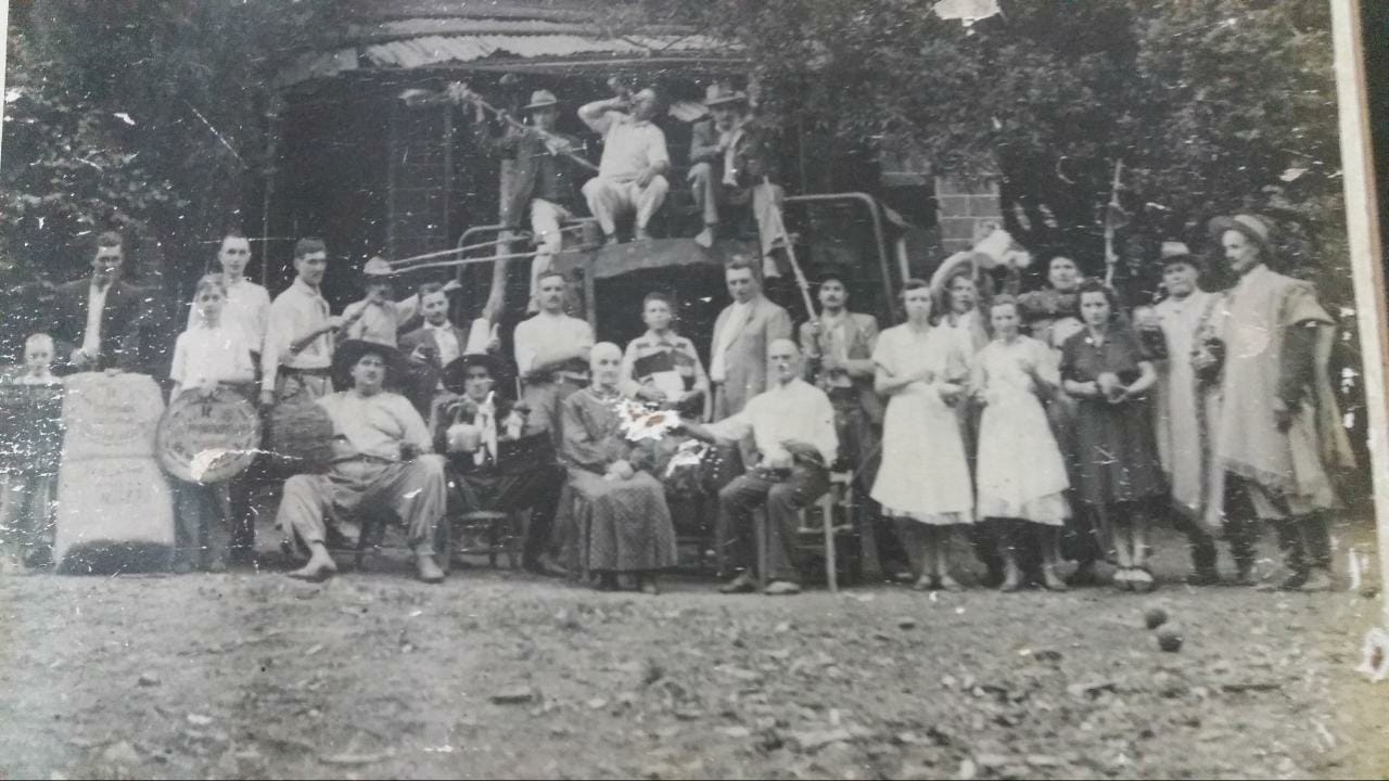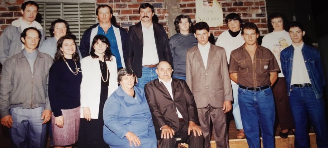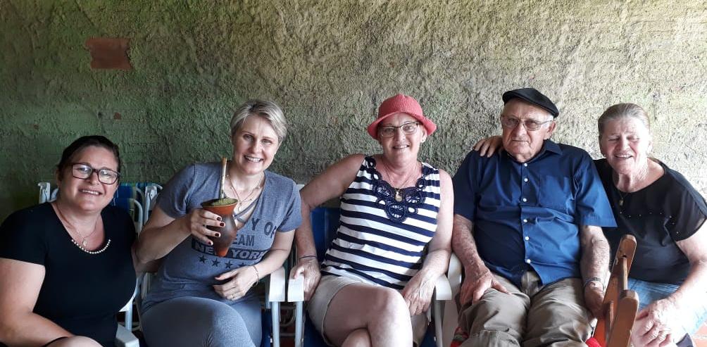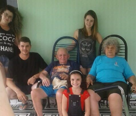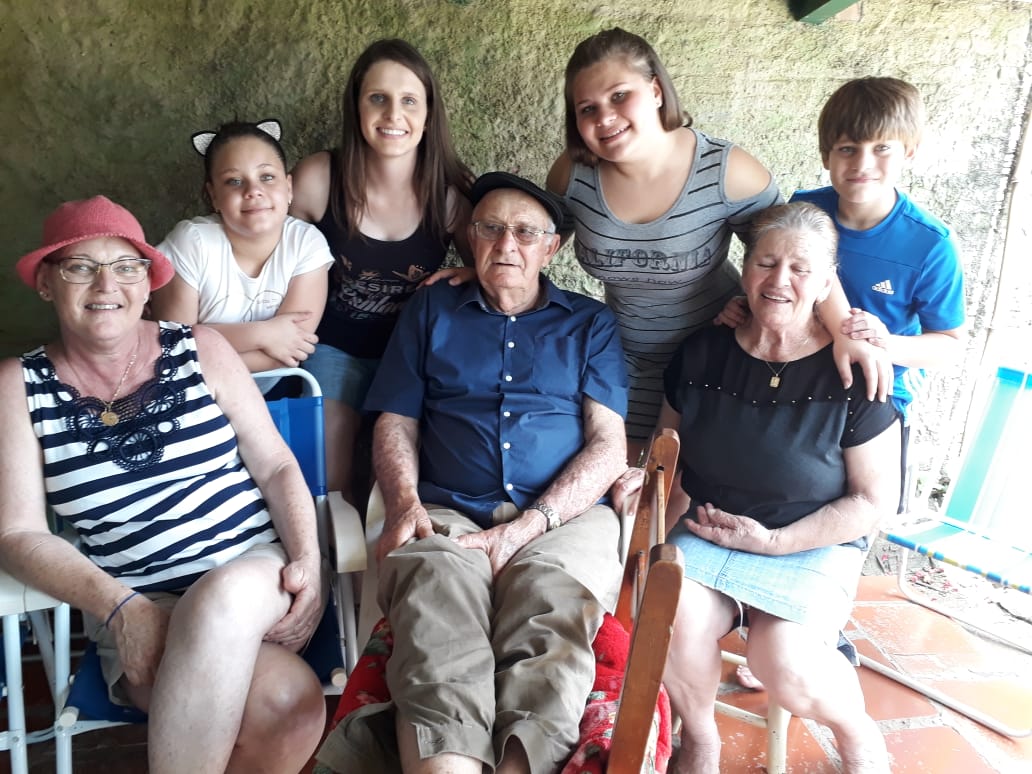 Foto na frente da casa em Pinhal Grande/RS, onde moravam os patriarcas.