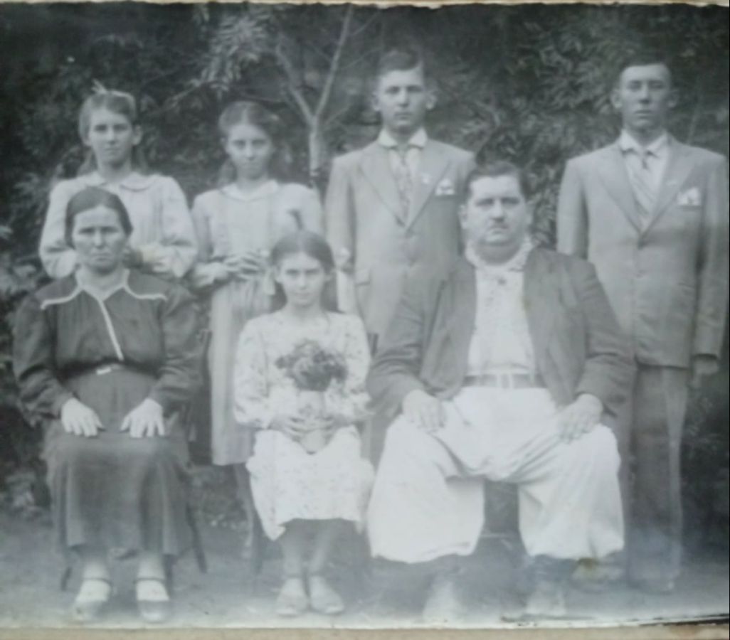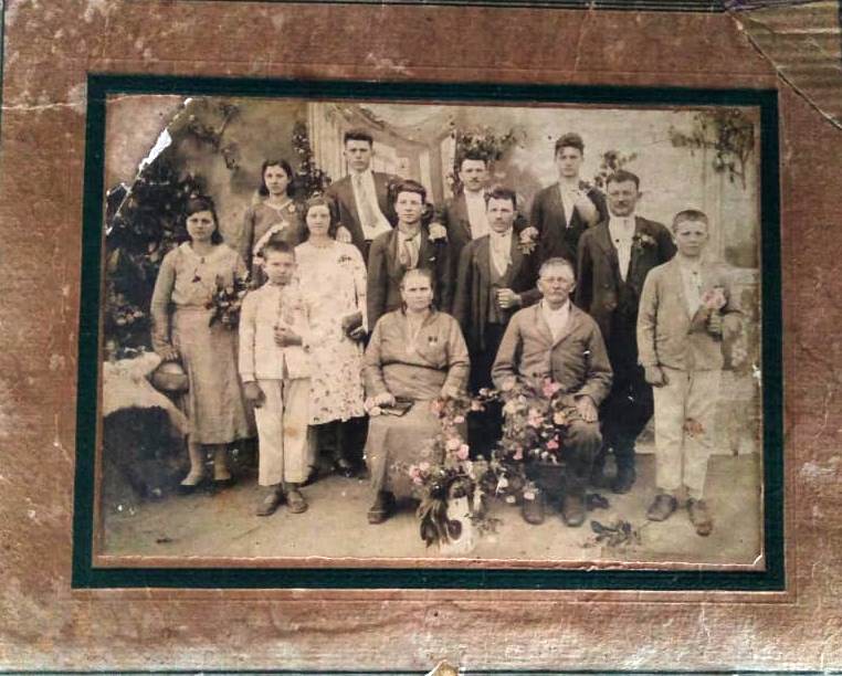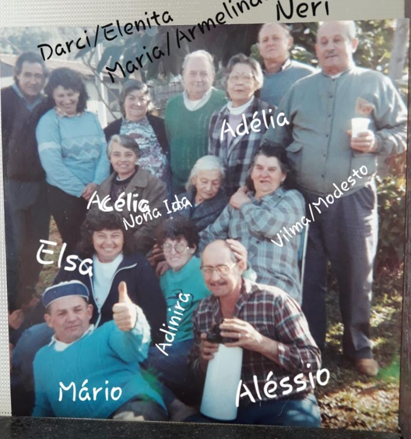 Maria Teresa e João Batista Lago, entre meio dos 2, Adelina Lago. atrás da nona Cecília Lago. Gema Otávia, depois Marcelino Lago e tio Adelino Lago.